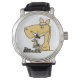 El maravilloso caballo divertido sosteniendo una pieza de ajedrez caballero y jugando un juego de reloj de pulsera de diseño de arte original del ajedrez hace un regalo único y divertido. También puede agregar texto personalizado y cambiar el color de fondo al realizar el pedido.