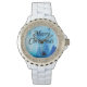 Hermoso reloj diamante de imitación para la temporada de Navidades. Este reloj de muñeca personalizado con copos de nieve blancos cayendo de un mágico cielo azul. Perfecto regalo de Navidades para sus seres queridos