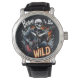 Un reloj de pulsera divertido y arriesgado que muestra un esqueleto tocando una guitarra rodeada de llamas con la frase "Hueso a ser salvaje", perfecto para agregar una vibración rebelde de rock and roll a cualquier equipo.