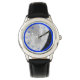 Luna, reloj de acero inoxidable para niños con correa de cuero negro y números azules