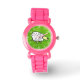 Guarda de regalo para un niño. Personalizado de ovejas con un fondo de campo verde en un reloj de niños.