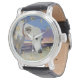Pulsera Pintura de aceite de Greyhound blanco, reloj de pu