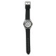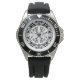 Reloj de acero inoxidable con correa de goma negra y tatuaje maorí en la cara.
