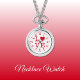 Regalo de Reloj de collar. Con la palabra 'amor' y una forma cardíaca que sustituye a la letra O. Rojo y blanco