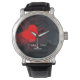 Un reloj llamativo que presenta un corazón rojo atrevido sobre un fondo oscuro salpicado de pequeños corazones, con las apasionadas palabras "¡TE QUIERO!" en letra blanca y un nombre personalizable debajo. La forma perfecta de llevar el amor en tu muñeca todos los días. Ideal para el Día de San Valentín, aniversarios, compromisos o como una profunda sorpresa romántica. ¡Personaliza con tu nombre especial! Caja de plata de alta calidad con correa de cuero negro | Movimiento de cuarzo | Resistente al agua