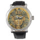 Mens King Tut Egyptian Black Leather Strap Watch muestra una hermosa foto del Rey Tuts Mami Máscara