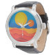 ¿Qué pasa cuando una artista tiene demasiado tiempo en sus manos? ¡Ella hace relojes por supuesto! Sé el primero de tus amigos en llevar un reloj de arte atrevido, colorido y abstracto. Este diseño está basado en una pintura al óleo original, titulada "Twin Suns", de la artista internacionalmente desconocida Carmen I Hurt.