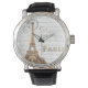 Una imagen sepia vintage de la Torre Eiffel de la exposición de París de los años 1800 aparece con una dirección escrita a mano de París vintage, con carteles y texto de Notre Dame du Paris de Victor Hugo. En mi tienda de Zazzle hay artículos y otros diseños de París antiguos.