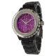 Pulsera Reloj de esmalte negro Diamante de imitación rosad