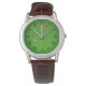 Reloj deportivo masculino con bola de golf, agujero y bandera sobre fondo verde. Gran idea de regalo personalizado para un aficionado al golf o al golf