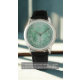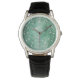 Reloj de hombre con cara de jade y números arábigos – Correa de cuero negra clásica | Nombre y iniciales personalizadas | Regalo islámico para él