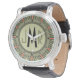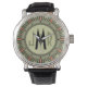 Elegante y elegante, limpio y simple relojes monogramados personalizados para el hombre especial en su lista de regalos. Marcas de hash rojas y negras clásicas pero de estilo moderno en la cara de caqui y camo de oliva militar. Negrita de las iniciales de los monogramas en el estilo art deco Gatsby para los caballeros sofisticados — haga clic en Personalizar para cambiar los tamaños de letra, estilo o colores. Los relojes de monograma de novedad hacen un regalo personalizado perfecto para cumpleaños, aniversario, graduación, jubilación, asistentes de boda, vacaciones y otras celebraciones de hitos.