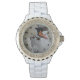Reloj de muñeca de esmalte blanco Diamante de imitación de cisne blanco
