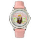 Cute reloj de correa de cuero rosa de acero inoxidable de un niño floral con un panda rojo / una madre panda menor sosteniendo a su bebé. Personaliza con tu nombre. Puedes encontrar productos de panda rojo a juego en mi tienda.