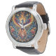 Haga una declaración audaz con este impresionante reloj de pulsera que presenta un fénix vibrante que emerge de las llamas, rodeado de intrincados patrones florales. El arte detallado de la cara del reloj muestra ricos tonos de naranja, amarillo y azul, simbolizando la renovación y la fuerza. Con una elegante correa de cuero negro y un funda de color plateado, este artículo combina el arte con la elegancia. Perfecto para los que aprecian diseños míticos y accesorios únicos, este reloj es una pieza atemporal que añade un toque de potencia y sofisticación a cualquier conjunto".