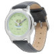 Un reloj verde con números, un ilustracion de una rana linda en su estanque y el texto de personalizable debajo! Un buen regalo para un niño de cumpleaños, ¡los números le permitirán aprender los tiempos más fácilmente!