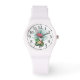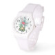 Este reloj de correa de silicona presenta flamingo rosa tropical caribeño con palmeras y flores. Incluye un año de garantía limitada para los fabricantes.