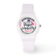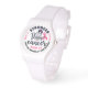Reloj deportivo de silicona blanca de mujeres Con una cómoda banda de silicio, este reloj es perfecto para el guerrero de entrenamiento dentro de usted! Hacerlo verdaderamente propio personalizando la cara de reloj con una cita, imagen o diseño inspiradores. Reloj de muñeca para mujeres Material: Strap: Funda de silicio: Dimensiones de silicio: Cara: 1.18" de diámetro Correa: 9.5" x 0.79" Funda: 1.57" de diámetro Peso: 0.082 lb 3 manos análogo Japón Cuartz® Impresión a color completo en la cara Disponible en 2 colores - Cierre de hebilla blanca y rosa Sólo a prueba de ducha año fabricante garantía limitada Batería incluida Este producto se recomienda para mayores de 13 años