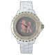 Pulsera Reloj femenino de caniche rosa Diamante de imitaci