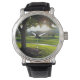 Pulsera Reloj fotográfico, campo de golf, puesta de sol, r