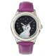 Pulsera Reloj morado de monograma de gato lindo