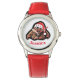 Reloj lindo para el chica adolescente con el diseño de mono del dibujo animado en el gorra de santa