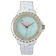 Pulsera Reloj rosa de flamenco - verde de menta