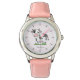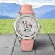 Un reloj rosado con una vaca linda sobre la hierba y un nombre de personalizable. ¡Esto podría ser un gran regalo para un niño que ama a los animales Kawaii! ¡Sólo hay que añadir el nombre y ofrecerlo!