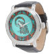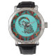 ¡Este es un único reloj tribal de lobos de "uno de bondad"! En la luna, sobre un fondo de color turquesa, se puede ver a un lobo tribal del suroeste... ¡Rodeado por un borde turquesa, Naranja y negro! Diseño De Arte Original Del Artista Kerry Miller.
