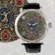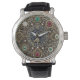 Sagittarius Watch con: industrial vintage, estilo Steampunk watch con números grandes fácilmente visibles. Diseño original de la cara de reloj cubierto de oro, diamantes, esmeraldas, piedras de gema ruby y círculo astrológico de signos zodiacos. (el fondo del reloj está impreso / no contiene gemas reales).