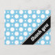 Gracias postales con un surtido patrón de puntos polka con tamaños alternados de círculos blancos sobre un azul estilo café. "gracias" se imprime diagonalmente en blanco en la parte delantera sobre una franja negra diagonal en la esquina inferior derecha. El reverso es un personalizado impreso con su propio texto, o puede dejarse fácilmente en blanco escribiendo a mano tus propios sentimientos de agradecimiento. Este estilo y color hacen de estas tarjetas una elección apropiada para duchas de novias, duchas para bebés y cumpleaños, o cualquier ocasión para dar las gracias. Existen descuentos masivos. Sin orden mínima.