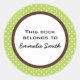 Asegúrate de que tus amigos nunca se olviden de devolver tus libros de nuevo con este lindo pegatina verde y marrón con puntos de polka blanco personalizados. Personalizar con su propio texto