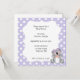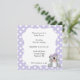 Una adorable invitación para una ducha de bebé o un cumpleaños especial con puntos de polka púrpura pálido y blanco, un área de texto estilo soporte blanco y un lindo oso koala con botella de bebé. Las invitaciones son fáciles de personalizar y se completan con sobres y su elección de papel.
