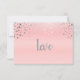 Tarjeta RSVP de boda. Con un moderno estilo boda rsvp en un fondo rosado con puntos de confeti plateados y la palabra amor en negrita. 100% Personalizable. Listo para Rellenar los cuadros o Pulse sobre el botón PERSONALIZAR para añadir, mover, borrar, cambiar de tamaño o cambiar cualquiera de los tipos de letra o gráficos. Fabricado con vectores de alta resolución y/o gráficos digitales para una impresión profesional. NOTA: (ESTA ES UNA IMPRESIÓN. Todos los diseños de productos de zazzle son "impresiones" a menos que se indique lo contrario en "Acerca de este producto") El diseño se imprimirá EXACTAMENTE como lo ves en la pantalla y en el producto...por lo tanto, asegúrese de que cuando realice sus cambios en el redimensionamiento de cualquiera de los gráficos o textos que encaja correctamente en las áreas y que su ortografía y su redacción sean como le gusta que sea en tamaño, color y fuente. Gracias por el apoyo y por parar en mi tienda - LetsUDesignIt