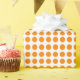 Papel de envoltura diseñado con un patrón de punto naranja sobre un fondo blanco. Personalizar el fondo blanco entre otras opciones.