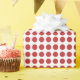 Papel de envoltura diseñado con un patrón de punto rojo oscuro sobre un fondo blanco. Personalizar el fondo blanco entre otras opciones.