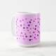 Pintura de puntos de polka rosados, púrpura y violeta de varios tamaños, impresos en tazas. Se puede personalizar con un fondo de color diferente.