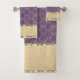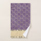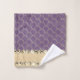 En este elegante juego de toallas, una sirena dorada de Relieve metalizado sobre un fondo violeta con una cinta dorada purpurinoso adornada con diamantes de oro brillante para resaltar cualquier decoración del cuarto de baño. Tomas de moda elegantes.
