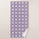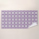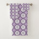 Towel and washcloth set featuring a purple and white floral geometric pattern. The design is symmetrical, conveying a modern, elegant feel.