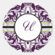 Purple Damask Letra inicial Pegatina U Boda