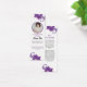Elegant Purple Floral Funeral Bookmark Template featuring delicate flower designs and serene typography — perfect for memorials, celebration of life services, and keepsake tributes.