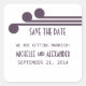 Moderna y sofisticada Moda Deco Simple Salve a los Pegatinas Date en violeta con un par de elegantes adornos art deco círculo. Estas elegantes habitaciones permiten a los pegatinas de fechas anunciar su elegante boda de inspiración Art Déco. Fácil de personalizar, simplemente agregue los detalles de su boda a los campos proporcionados. Haga clic en el botón "Personalizar" para encontrar opciones de personalización adicionales.