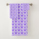 Purple White Hearts Pattern Bath Towel Set