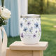 Stay refreshed and meadow calm with this personalized wine tumbler. The all-over watercolor purple wildflowers and sage stems pattern wraps these wine glasses, plus your first name is in an elegant script. Keeps drinks cool—leak-proof. Add a name in a few seconds—makes any gift or bridal party unforgettable.