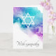 Hermosa tarjeta de condolencia con una Estrella blanca de David en un salpicón de color púrpura y acuático y el texto "Con compasión" en el frente. Texto personalizado dentro: "Lamentamos mucho su pérdida. Que encuentren paz y comodidad en estos tiempos difíciles".