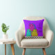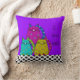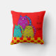 Almohada caprichosa adorable de la cara del gato, regalo dibujado y diseñado, perfecto del artista para cualquier amante del gato. Detrás de la almohada es rojo con el mismo diseño.