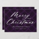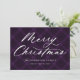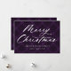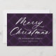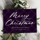 Elegante tarjeta navideña con "Feliz Navidad" exhibida en un guión de caligrafía blanca sobre un fondo de manto morado pintado. Personalice la parte delantera de la rústica tarjeta de vacaciones sin foto añadiendo su nombre y el año. La parte posterior de la tarjeta presenta un fondo de manchas a juego con sutiles puntos blancos de nieve.