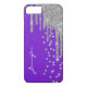 Elegante estuche de teléfono hecho en morado con gráficos de un purpurina plateado que luce pintura y diamantes falsos goteando hacia abajo, desde la parte superior del funda. Personaliza el texto para ti mismo o como una idea de regalo de moda para ella.
