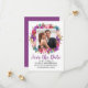 Púrpura Floral Guardar tarjeta de fecha con foto
