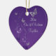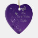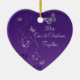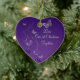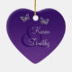 Recuerde su día especial con este primer ornamento de cerámica en forma de corazón floral púrpura hermoso del recuerdo del navidad junto con las mariposas y las flores del gris de plata en él. Usted puede modificar el texto para requisitos particulares para decir lo que usted quiere. El **** esté POR FAVOR seguro que su texto está puesto donde usted lo quiere, pues imprimirá como aparece en su monitor. Zazzle no corregirá cualquier cosa. También hace juego la invitación del boda mostrada abajo. Si usted necesita alguna ayuda, envíe por correo electrónico por favor niteowlstudio@gmail.com.